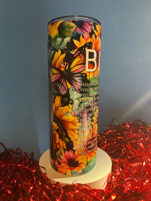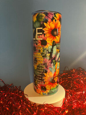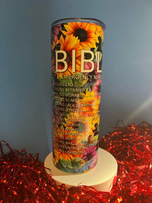 Bible, Emergency Numbers, Affirmations, Colorful Sunflowers 20oz Tumbler