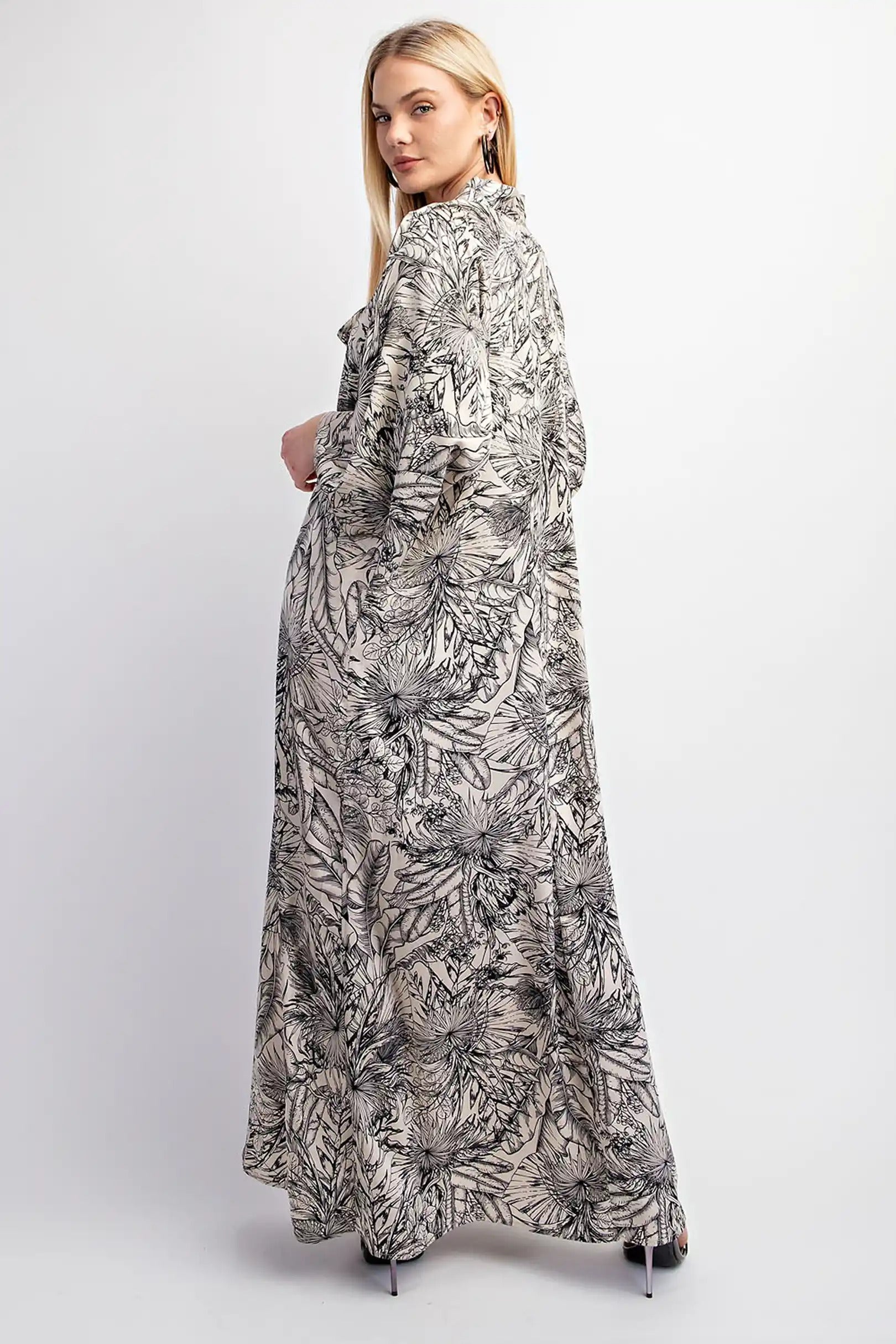 Add our Elegant Print Satin Maxi Dress with Tie Neck to your cart now and make a stylish statement with every step!